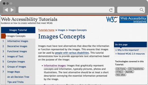 画像やメディアの代替となる仕組をデザインに用意してください。例えば下記のものが必要になるでしょう。